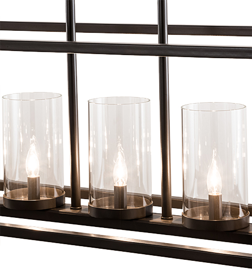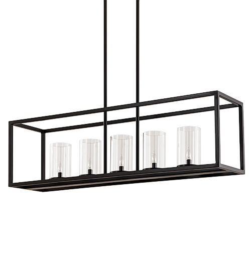 Affinity is a finely executed, minimalist design featuring 5 Clear Glass Cylindres within a sleek, custom frame. This linear fixture is enhanced with a straight line frame and hardware featured in a Timeless Bronze finish and perfect for illuminating conference rooms, islands, lobbies and other spaces. Created in our 180,000 square foot manufacturing facility in Upstate New York, this pendant offers hand detailed American craftsmanship perfected by years of time honored artistry, passed down from generations of skilled artisans. Custom sizes, designs, and colors are available, as well as dimmable, energy efficient options including LED. This 48-inch long fixture is UL and cUL listed for damp and dry locations.