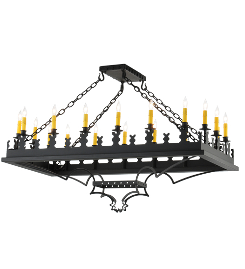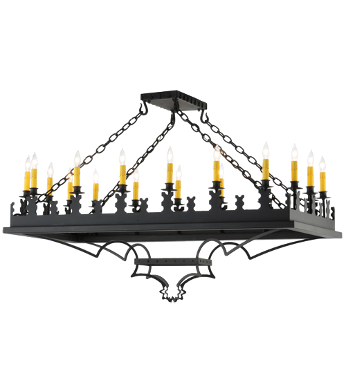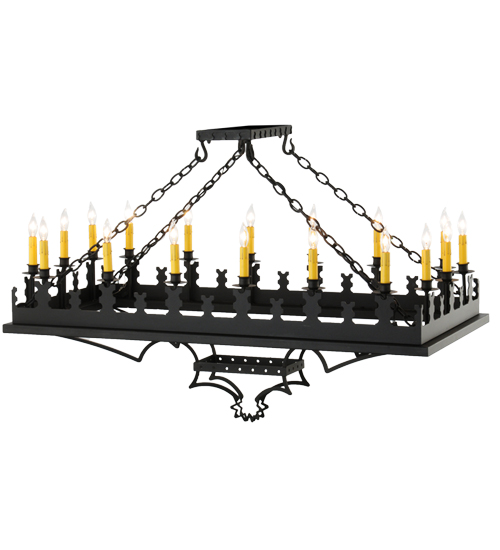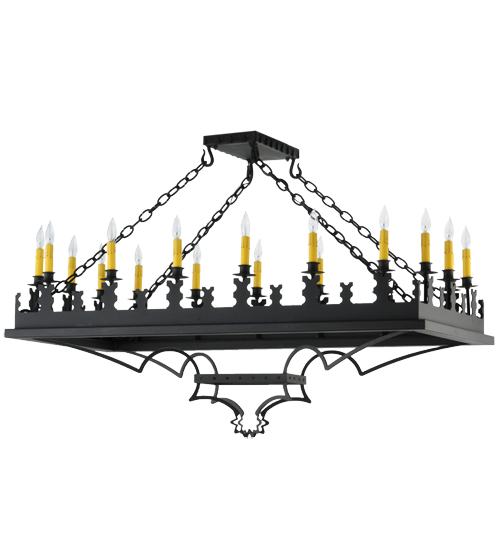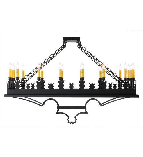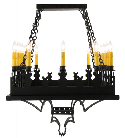 Blending Gothic and Rustic design influences. Yosemite presents 18 Ivory faux candlelights on decorative bobeches. The rugged frame and hardware are hand finished in a bold Costello Black. Ideal for illuminating counters, bars and tables in residential, hospitality and commercial settings. Handcrafted by highly skilled artisans in our 180,000 square foot manufacturing facility in Yorkville, New York. Shade colors, metal finishes and fixture sizes can be customized to your needs. UL and cUL listed for dry and damp locations.