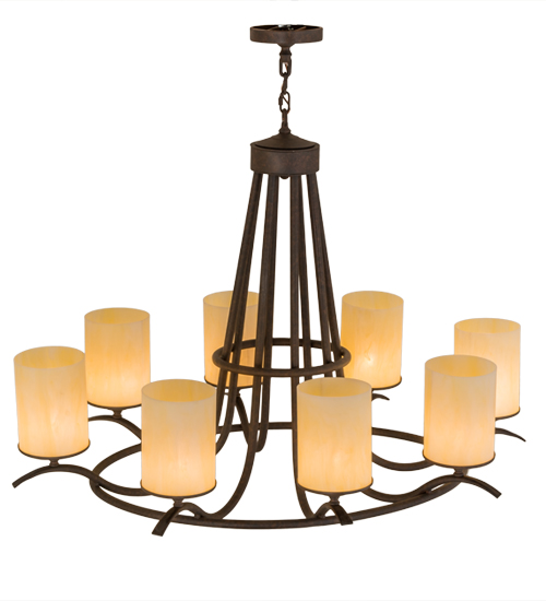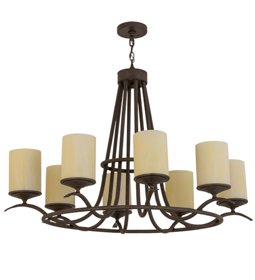 Add graceful detail and beautiful ambient illumination to any interior decor with this well balanced Octavia lighting design. Eight Cylindres, featured in Botticino Idalight, are perched on bobeches which are embraced by an exquisite curved frame with a Cajun Spice finish. Custom crafted in our manufacturing facility in the USA, this chandelier is perfect for creating a welcoming environment in any space. Choose a custom color, style, size or dimmable energy efficient lamping option such as LED to individualize the look that you need. This fixture is UL and cUL listed for damp and dry locations.