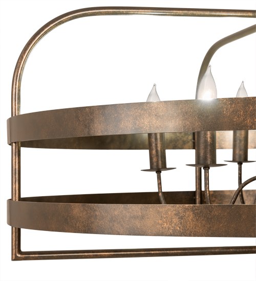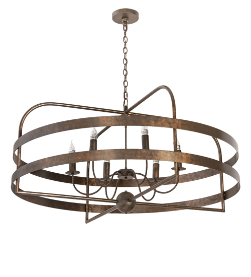 An elegant chandelier. Aldari includes six GU10 base LED Decorative Flame-tip Candelabra 5-watt bulbs that comply with California Title 24 regulations. At the time of this writing is the only source in the world for this type of energy efficient bulbs today. These bulbs are featured on candle covers that are offered in a Gilded Tobacco finish. The exquisite frame is encircled by two rugged decorative rings in a complementary finish for a unique look. The overall height ranges from 31 to 90 inches as the chain length can be easily adjusted in the field to accommodate your specific lighting application needs. Custom crafted in our 180,000 square foot manufacturing facility in Yorkville, NY. UL and cUL listed for dry and damp locations.