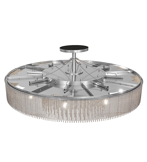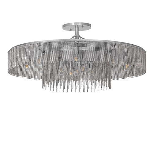 Like a hard rain beginning to fall, this dynamic chandelier illuminates beautifully, replicating a brilliant sun shower with a modern industrial twist. The 13 Edison-style lamps illuminate inner and outer garlands of Extreme Chrome and Faux Mercury finished metal balls and chains. This ceiling fixture serves as a centerpiece for dining and living areas in residential, retail, office, and hospitality spaces. The Ball Chain Chandelier is featured in our American-made, American-designed, handcrafted Industrial Lighting Collection. This fixture is manufactured in Yorkville, New York. UL and cUL listed for dry and damp locations. The fixture was specified by Kimberly Timmons Interiors of Denver, Colorado, for a residence in Cherry Hills Village, Colorado.