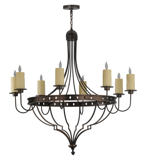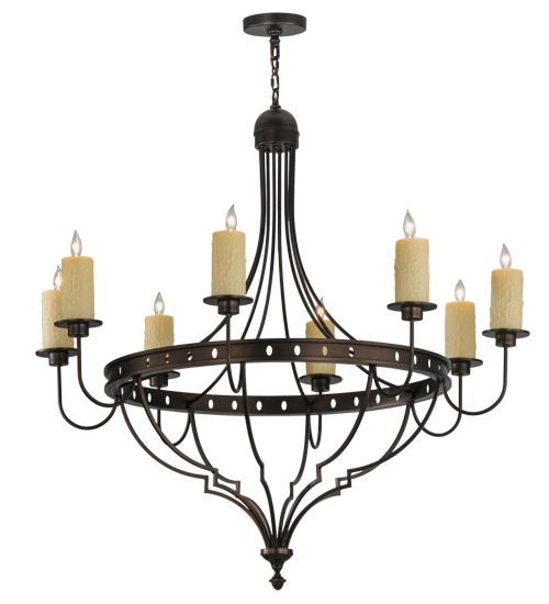 An elegant statement piece of distinction. The Botticini Chandelier features 8 Ivory faux candlelights aligned around the pierced ring which is hand finished in Mahogany Bronze. Ideal for illuminating entryways, dining areas and other rooms in fine residential and hospitality settings. Handcrafted by master artisans in our 180,000 square foot manufacturing facility in Yorkville, New York. Candlelight colors, metal finishes and sizes can be customized to meet your needs. UL and cUL listed for dry and damp locations.