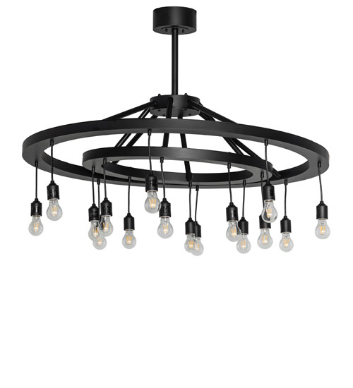 Merging a modern look with traditional bulbs, Donner proves to be a stylish show-stopper. Two sturdy Solar Black rings appear to rotate on their access while embracing 16 Edison-style lamps with Black cords at various heights. The chandelier is perfect for making a dramatic design statement in entryways and living areas, homes, and commercial spaces from Hialeah, Florida, to Garland, Texas, to Glendale, Arizona. The Donner 16 Light Chandelier is featured in our American-made, American-designed, handcrafted Modern Lighting Collection, which is manufactured in Yorkville, New York. UL and cUL listed for dry and damp locations.