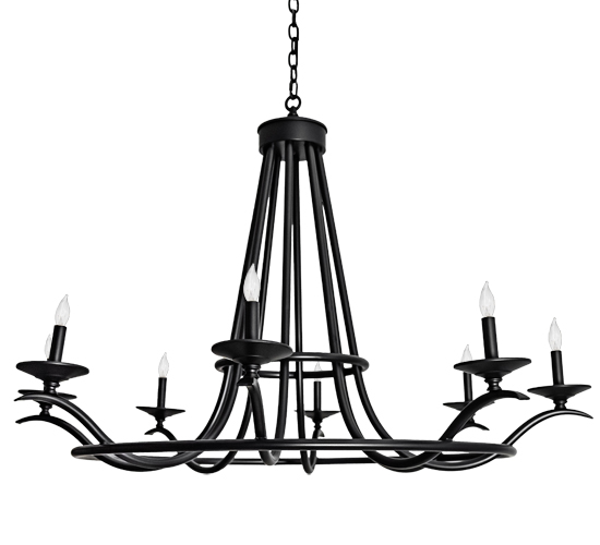 This well-balanced Octavia lighting design adds graceful styling and beautiful ambient illumination to any interior decor. Eight complementary faux candlelights are perched on bobeches, which are embraced by an exquisite curved frame with a Blackwash finish. The overall height ranges from 38 to 144 inches, as the chain length can be easily adjusted in the field to accommodate your specific lighting application needs. The Octavia Chandelier is included in our American-manufactured, American-designed, handmade Transitional Lighting Collection. Manufactured in the USA. UL & cUL listed for dry and damp locations.
