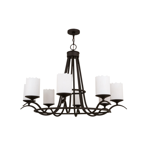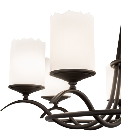 Add graceful detail and beautiful ambient illumination to any interior decor with this well balanced Octavia lighting design. Eight Statuario Idalight Cylindres are perched on bobeches, which are embraced by an exquisite curved frame with an Oil Rubbed Bronze finish. Custom crafted in our manufacturing facility in the USA, this chandelier is perfect for creating a welcoming environment in any space. Choose a custom color, style, size or lamping option to individualize the look that you need. UL and cUL listed for damp and dry locations.