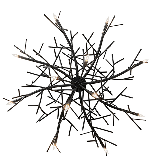 Designed like a dense group of thin branches in the cold winter woods. The dramatic Thicket chandelier is a free-flowing abstract expression of light. Delicate branch-like metal arms abound in a stunning Blackwash finish. The fixture provides ambient illumination with 12 miniature lamps. This exquisite chandelier is perfect for illuminating entryways and dining areas in fine residences, restaurants, and hotels. The Thicket Chandelier is included in our American-made, American-designed Nature Inspired Lighting Collection and is manufactured in Yorkville, NY. The fixture is UL and cUL listed for dry and damp locations. Upstate New York’s adventurous playland, known as the Adirondack Mountains, with its many breathtaking forests, lakes, and rivers, is the spiritual birthplace of and inspires our rustic-themed collections.