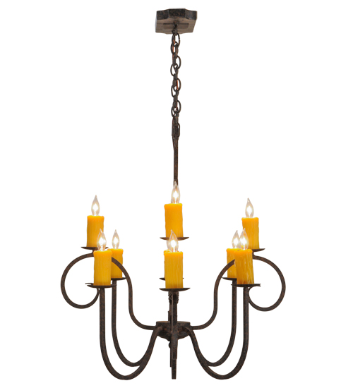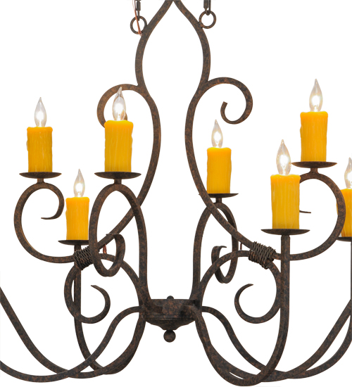 Clifton offers a rich, modern twist on a classic, elegant lighting design. This sumptuous chandelier features a Coffee Bean finish with 8 Amber faux candlelights perched on bobeches and enhanced with Hand-Forged Iron Scrollwork. The overall height ranges from 38 to 105 inches as the chain length can be easily adjusted in the field to accommodate your specific lighting application needs. Ideal for illuminating islands, counters and tables in residential, hospitality and commercial settings. Handcrafted by master artisans in our 180,000 square foot manufacturing facility in Yorkville, New York. Candlelight colors, metal finishes and fixture sizes can be customized to meet your needs. UL and cUL listed for damp and dry locations.