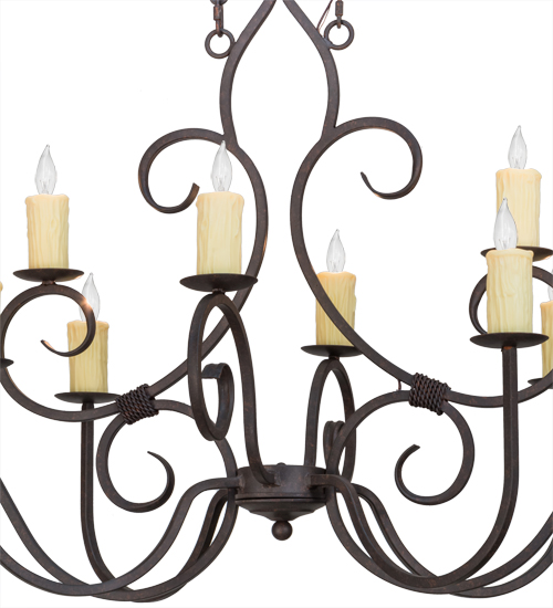 Clifton offers a rich, modern twist on a classic, elegant lighting design. This opulent, sumptuous chandelier features a Cajun Spice finish on a solid steel metal frame with 10 Ivory faux candlelights perched on bobeches with scroll arms and accents. Handcrafted in the USA, this fixture is available in custom designs, finishes and sizes, as well as energy efficient lamping options such as LED. The chandelier is UL and cUL listed for damp and dry locations.