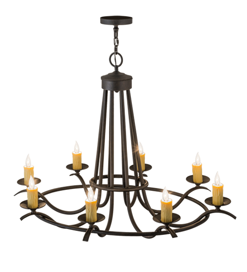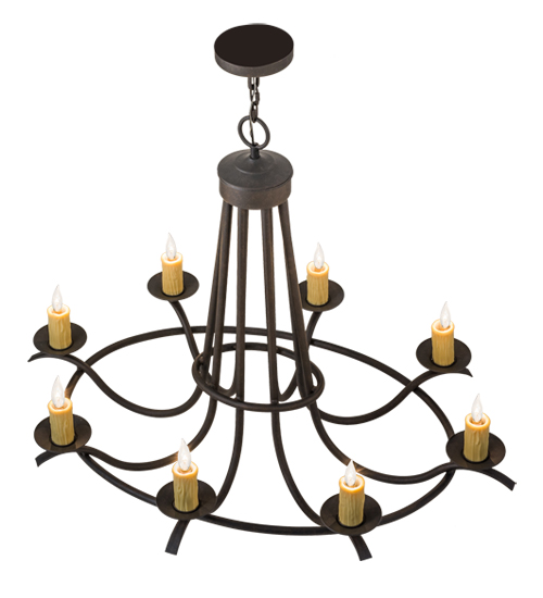 Add graceful detail and beautiful ambient illumination to any interior decor with this well balanced Octavia lighting design. 8 Amber faux candlelights are perched on bobeches, which are embraced by an exquisite curved frame with a Chestnut finish. Custom crafted in our manufacturing facility in the USA, this chandelier is perfect for creating a welcoming environment in any space. Choose a custom color, style, size or lamping option to individualize the look that you need. This 48-inch fixture is UL and cUL listed for damp and dry locations.