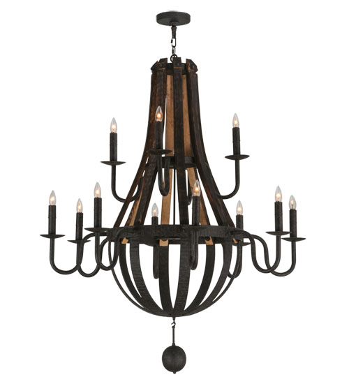 48″ Wide Barrel Stave Madera 12 Light Two Tier Chandelier | 247815