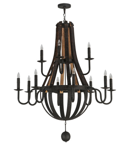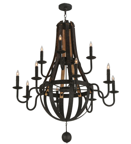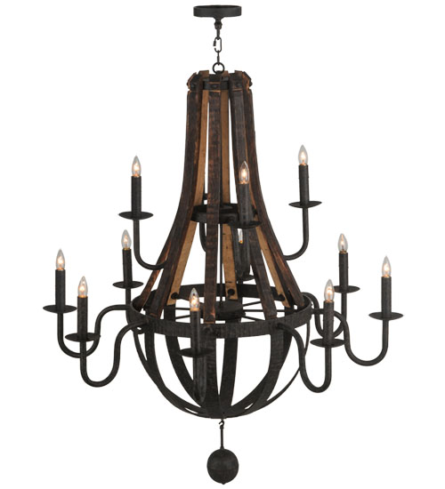 44″ Wide Barrel Stave Madera 12 Light Two Tier Chandelier | 253553
