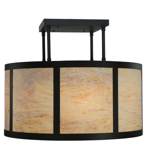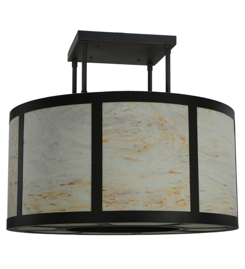 Designed with a refined rotund profile, this stunning centerpiece for the ceiling complements any decor. The shade features Randsburg Rock Idalight which is enhanced with a matching bottom diffuser and enhanced with a frame and hardware in an Oil Rubbed Bronze finish. Handcrafted by highly skilled artisans in our manufacturing facility in Upstate New York, this transitional styled fixture is available in a wide range of custom choices including various designs, colors, sizes and dimmable energy efficient lamping options such as LED. The fixture is UL and cUL listed for damp and dry locations.