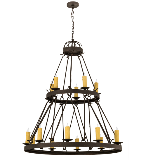 Blending an elegant style with a rich Custom Wrought Iron look, the Lakeshore features two Gilded Tobacco finished steel rings that provide timeless beauty and overall illumination. A total of 15 Ivory faux candlelights are mounted on two tiers of this elaborate structure, each perched on a bobeche.5 luminaires are displayed on the top tier and 10 are affixed to the lower ring, making this chandelier ideal for illuminating entryways, foyers, lobbies and other residential and commercial spaces. Handcrafted in the USA in our manufacturing facility in Yorkville, New York. Custom colors, styles and sizes are available, as well as dimmable energy efficient lamping options such as LED. UL and cUL listed for damp and dry locations.
