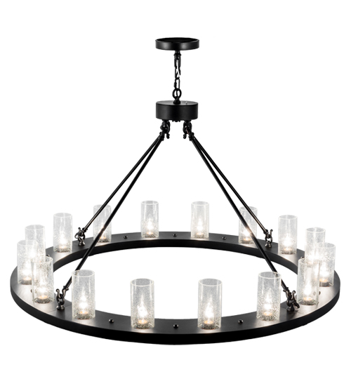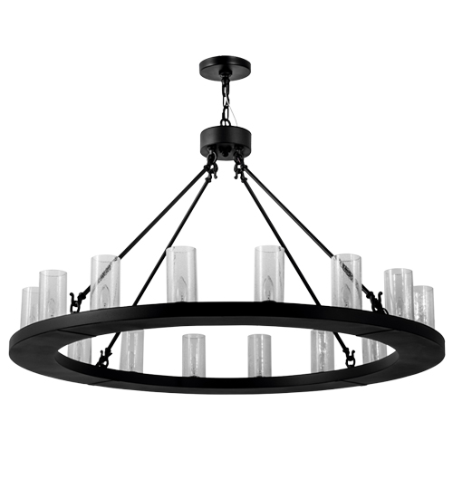 Blending an elegant style with a classic distinguished look, Loxley is custom crafted with 16 Clear Seeded Glass Cylindres perched on a smooth, circular frame, which is featured, in a Black Textured finish. The chandelier is ideal for illuminating lobbies, conference rooms, entryways and other large residential and commercial spaces. The fixture is handcrafted by our artisans in the USA, in our manufacturing facility in Yorkville, New York. Custom colors, styles and sizes are available, as well as dimmable energy efficient lamping options such as LED. The fixture is UL and cUL listed for damp and dry locations.