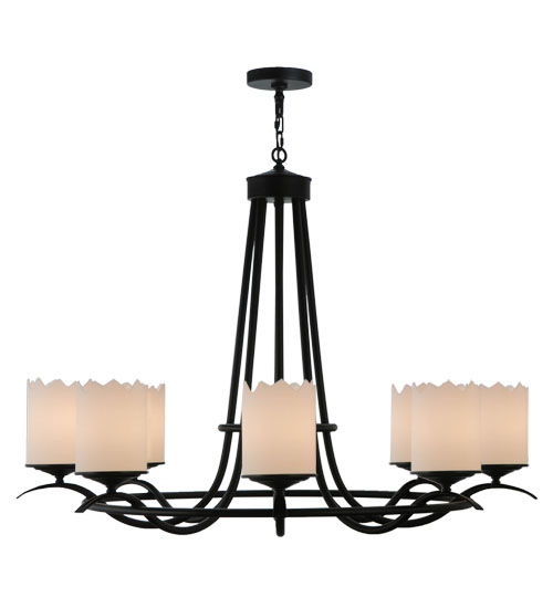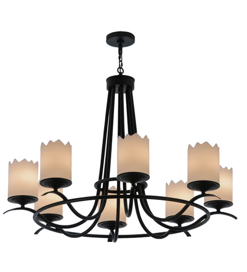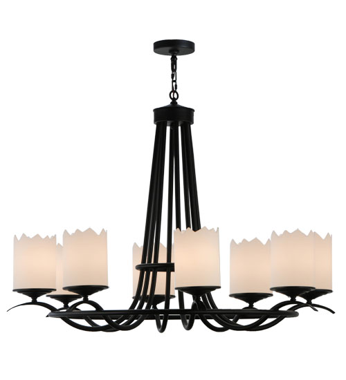 Add graceful details to any interior decor with this elegant lighting design that provides soft ambient illumination. 8 Statuario Idalight Cylindres are perched on decorative bobeches that are embraced by an elegant frame featured in a richly hued Blackwash finish. Handcrafted in our manufacturing facility in the USA, this Hand-forged Iron chandelier is available in custom colors, styles, size and dimmable energy efficient lamping options to individualize the look that you need. The 48-inch wide fixture is UL and cUL listed for dry and damp locations.