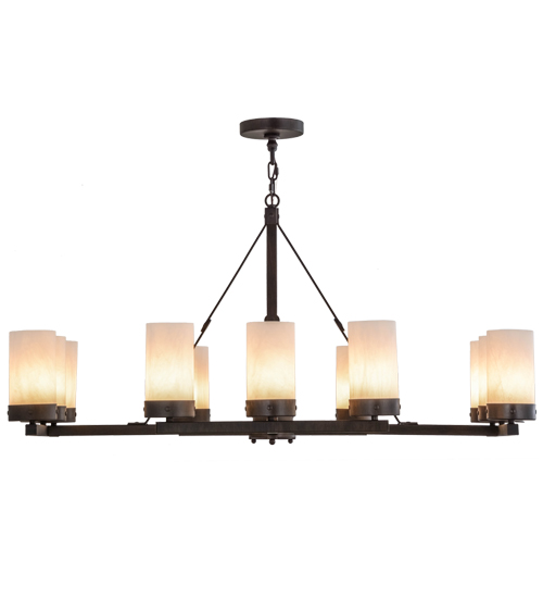 Creating a striking transitional lighting design with a linear profile, Parker is custom crafted with 12 Fleshtone Idalight Cylindres embraced by a metal frame that is hand finished in a Classic Rust coloration. The oblong fixture is ideal for illuminating dining areas, conference tables, lobbies and other residential and commercial spaces, and is handcrafted by highly skilled artisans in our manufacturing facility in Yorkville, New York. Custom colors, styles and sizes are available. Dimmable energy efficient lamping options such as LED are offered. This 48-inch long chandelier is UL and cUL listed for damp and dry locations.