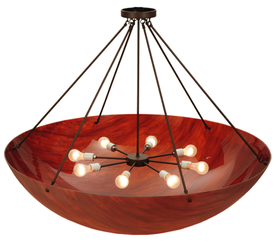 A voluminous transitional ceiling fixture for residential, hospitality and commercial applications, the Rio evokes a unique stunning look featuring a Maduro Idalight shade and complemented with hardware offered in an Cafe Noir finish. Handcrafted in our Yorkville, NY manufacturing facility, the striking Pendant is available in custom sizes, styles, finishes and dimmable lamping options such as LED. The 48-inch wide pendant is UL and cUL listed for dry and damp locations.