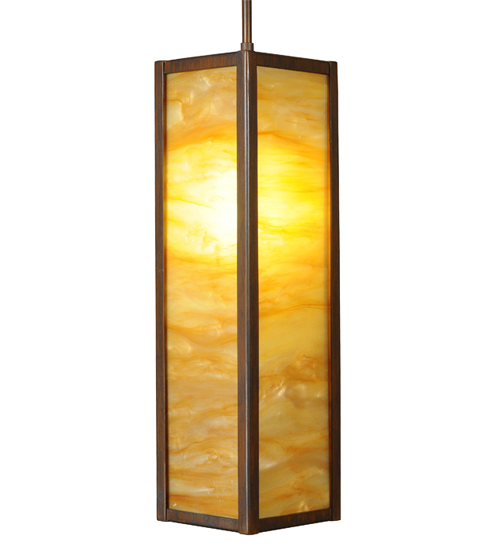 A striking design articulating a unique chic look, this mini pendant features an Ambra Siena diffuser which is complemented with a frame and hardware in a Rustic Iron finish. Align these pendants in multiples in a row over a counter, island or table in homes, restaurants, hotels and clubs for complete designer look. The fixture is custom crafted in Central New York. Custom sizes, styles, colors and dimmable lamping options such as LED are available. This 5-inch mini pendant is UL and cUL listed for dry and damp locations.