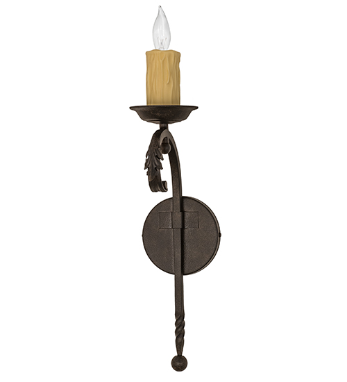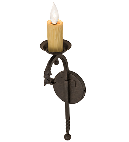 Rich, handsome styling greets a distinctive sophisticated look. A Faux Ivory candlelight is perched atop of a custom tailored bobeche, which is accented with a curved decorative stem embellished with a ball point accent for a high level of aesthetic appeal. Stunning Solid Steel hardware is hand forged and hand finished in a Chestnut Textured hue. Ideal for hallways, foyers and other spaces in homes, restaurants, pubs, hotels and other fine interiors, the fixture is custom crafted by our artisans in our manufacturing facility in Yorkville, New York.Custom sizes, designs, colors and dimmable energy efficient lamping options are available.