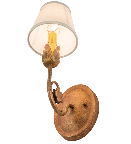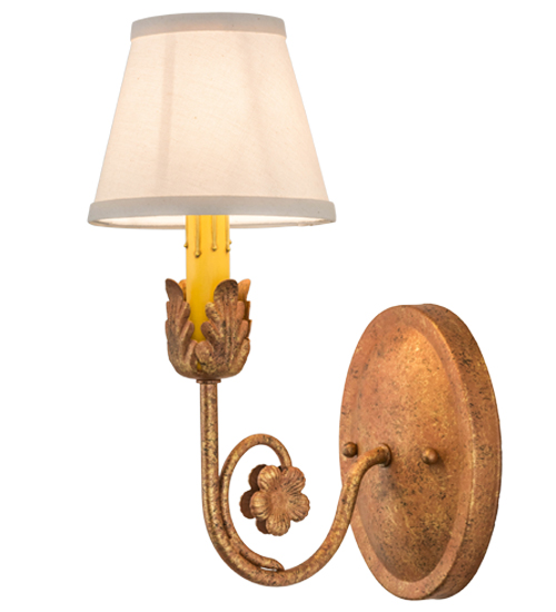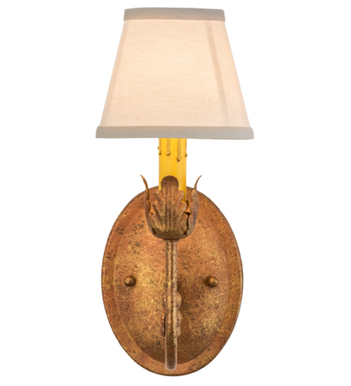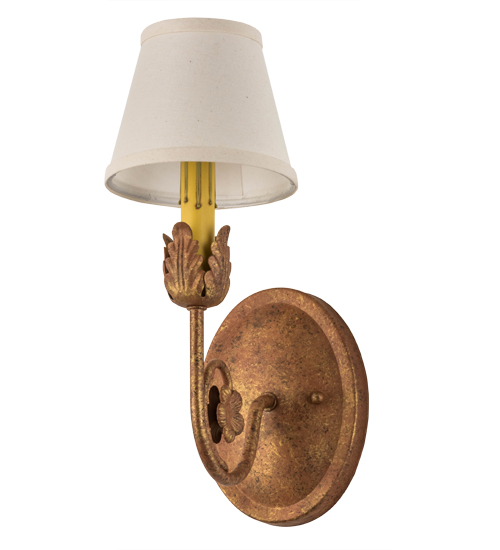 Exquisite styling and luxurious charm are reflected in the Antonia Wall Sconce, adorned with a faux candlelight crowned with a White Linen shade. The decorative accents and Hand-forged Iron Scrolled Arm are featured in an Autumn Leaf finish. The fixture features quality materials and hand-detailed American craftsmanship perfected by years of honored artistry from generations of highly skilled artisans. The Antonia Wall Sconce is included in our American-made, American-designed, handcrafted Traditional Lighting Collection. UL and cUL listed for dry and damp locations; however, we do not recommend installing it in spaces that experience a large amount of moisture due to the fabric shade.
