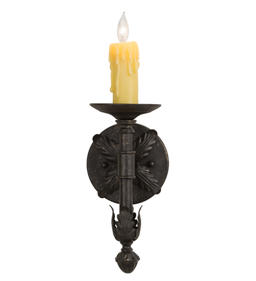 A rich luxurious beauty. Clovis blends classic and timeless styling. This sconce is the perfect choice for today’s interiors and adds a finishing touch to living areas, entryways, hallways and other spaces in residential, hospitality and commercial locations. The Ivory faux candlelight is perched on a bobeche embraced by hardware adorned with Acanthus leaf accents in a Golden Bronze finish. Handcrafted in our 180,000 square foot manufacturing facility in Yorkville, New York. Candlelight colors, metal finishes and fixture sizes can be customized to your needs. UL and cUL listed for dry and damp locations.