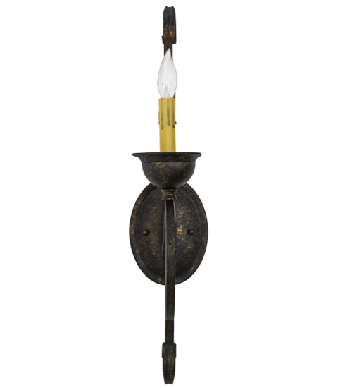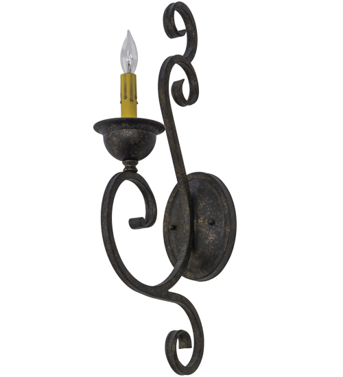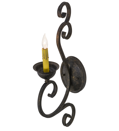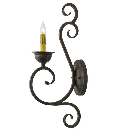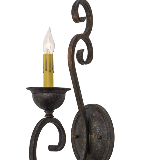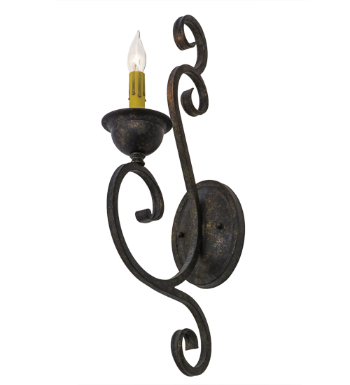 Beauty and grace come to light with this elegant wall sconce. The luminaire is highlighted with an exquisite Hand-Forged Iron Scrollwork design. A faux candlelight is perched on a distinctive bobeche featured in a Golden Bronze finish. This classic lighting fixture is perfect to illuminate hallways and other rooms in fine homes, hotels, restaurants and a variety of hospitality and commercial spaces. Handcrafted by highly skilled artisans in our 180,000 square foot manufacturing facility in Yorkville, New York. Shade colors, metal finishes and fixture sizes can be customized to meet your lighting needs. UL and cUL listed for damp and dry locations.