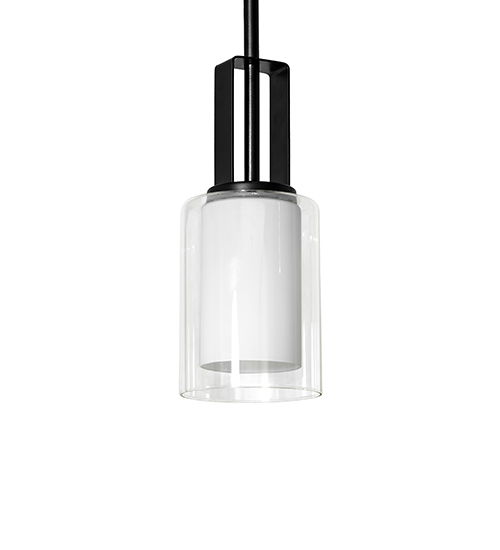 A cool contemporary look. A Clear Glass shade reveals a stylish White Glass cylinder in a chic pendant. The design is enhanced with sturdy industrial-designed hardware highlighted in a Solar Black finish. Line up the mini pendants in groups over islands, bars, counters, and tables to make a stunning design statement in residential, hospitality, and commercial environments. Ideal for installation in homes and restaurants from Boston, Massachusetts, to Cleveland, Ohio, to Los Angeles, California. The Horton Mini Pendant is included in our American-designed, handcrafted Modern Lighting Collection. UL & cUL listed for dry and damp locations.