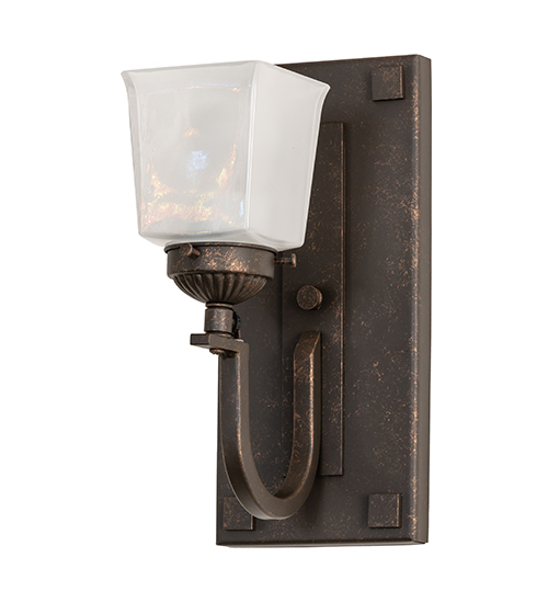 Minimalist design created with meticulous attention to details. From the formed Mouth-blownWhite art glass shade to the curved bobeche and graceful arm, to the geometric styled backplate with decorative accents, the handsome frame and hardware are hand-finished in a stunning Gilded Tobacco hue. Handcrafted by highly skilled artisans in our manufacturing facility in Yorkville, NY, the sconce is offered in custom styles, colors and sizes, as well as dimmable energy efficient lamping such as LED. The 11-inch tall fixture is UL and cUL listed for dry and damp locations.