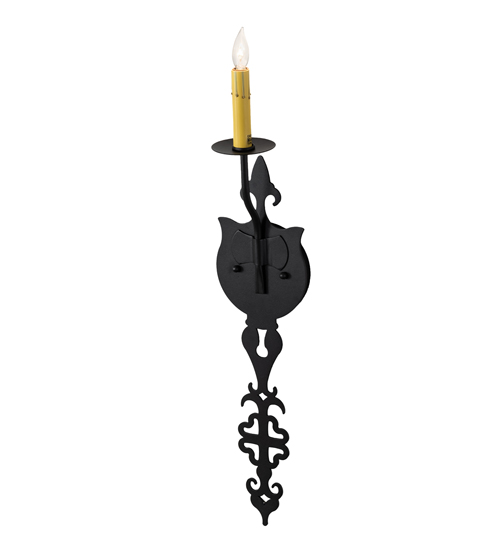 Ornate Hand-forged Iron Scrollwork and a medallion styled backplate create a rich, luxurious look for Merano. This high-styled wall fixture features an Ivory faux candlelight perched on a bobeche and enhanced with an Old Wrought Iron finish. This ADA Compliant wall sconce is ideal to complement a variety of architectural styles for today’s interiors. Made to Order by highly skilled artisans in our 180,000 square foot manufacturing facility in Yorkville, New York. Candlelight colors, metal finishes and sconce sizes can be customized. UL and cUL listed for dry and damp locations.