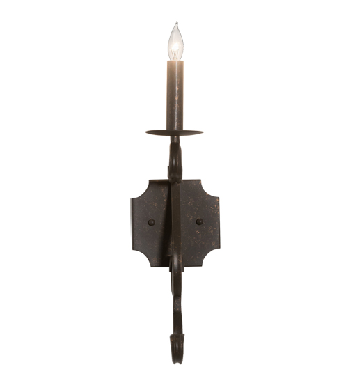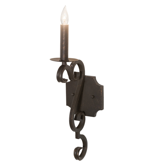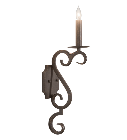 Exquisite minimalism blends with a stunning classic revivalism. A single faux Candelabra Lamp in an alluring Gilded Tobacco finish is perched on a bobeche embraced by a scrolled arm and decorative hardware with a matching finish.? The fixture is offered with multiple faux candlelights as well, and in a variety of finishes, styles, sizes and dimmable energy efficient lamping options such as LED. Custom crafted by highly skilled artisans in the USA, this 17-inch tall fixture is UL and cUL listed for damp and dry locations.