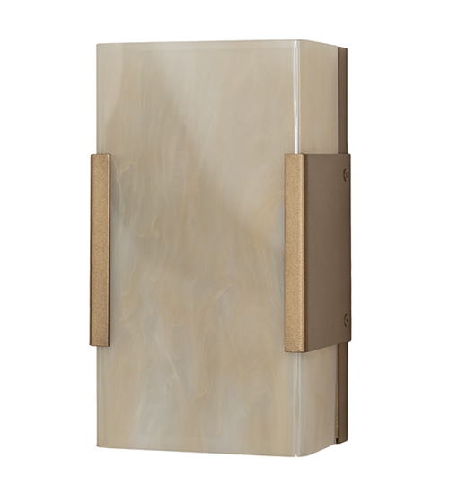 Rendering a stunning transitional look. This handsome lighting design features a Sahara Taupe Idalight lens embraced by a Golden Metallic finished frame. The Quadrato Vicio Wall Sconce is included in our American-made, American-designed, handcrafted Transitional Lighting Collection. Manufactured in Yorkville, NY. UL and cUL listed for dry and damp locations.