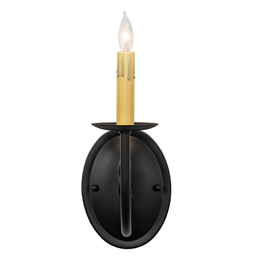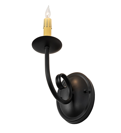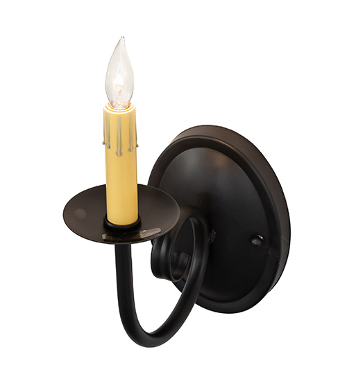 Designed as a traditional illuminating accent for any room or corridor. This minimalistic wall sconce features an Ivory faux candlelight and bobeche with an elegant curved arm and round wallplate in a Blackwash finish. The wall fixture can be placed on walls in dining rooms and hallways in fine homes, restaurants, and resorts. See the complementary wall sconce with a White Textrene shade, model 280749. The Squire Wall Sconce is included in our American-made, American-designed, handcrafted Traditional Collection and manufactured in Yorkville, New York. UL and cUL listed for dry and damp locations.