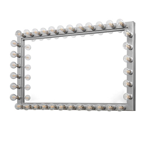 This stunning fixture features 36 Edison-style lamps that adorn the border of this rectangular-shaped vanity mirror. This Hollywood-style fixture is offered in an Extreme Chrome finish and is ideal for illuminating fine baths in residential and hospitality locations. The Alva Greenroom 36 Light Illuminated Vanity Mirror is included in our American-made, American-designed, handcrafted Art Deco Collection and manufactured in Yorkville, New York. The lighted mirror is UL and cUL listed for dry and damp locations.