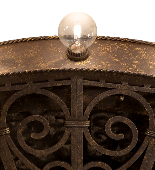 This extraordinary ceiling fixture features elegant metal scrollwork in a Pompeii Gold finish. It is enhanced with an Antique Bronze finished Mirror within the cage profile to provide subtle depth to this intriguing lighting design. Twenty complementary Edison-style bulbs evoke beautiful ambient illumination. This luxurious ceiling fixture is ideal for illuminating dining spaces, entryways, and other residential, hospitality, and commercial spaces throughout the US, including Arlington, Virginia, Omaha, Nebraska, and Sacramento, California. The Osteria 20 Light Flushmount is included in our American-made, American-designed, handcrafted Gothic Lighting Collection. This fixture is manufactured in Yorkville, New York. UL and cUL listed for dry and damp locations. This stunning fixture was designed by Karen Hanlon and is featured at Elisabetta’s Ristorante, located at 32 Atlantic Ave in Delray Beach, Florida.
