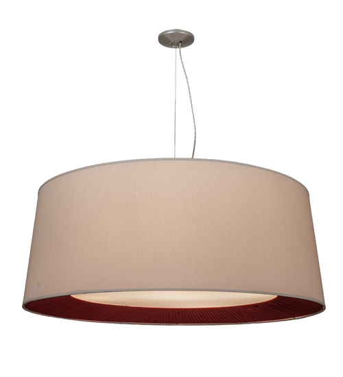 An architectural style for today’s interiors, this pendant features a Textrene shade with a Cream exterior and Red interior, which is complemented with a Statuario Idalight bottom diffuser. The hardware is featured in a Nickel plated finish. Handcrafted by our artisans in the USA, options include custom styles, sizes, colors and dimmable energy efficient lamping. The fixture is UL and cUL listed for damp and dry locations.