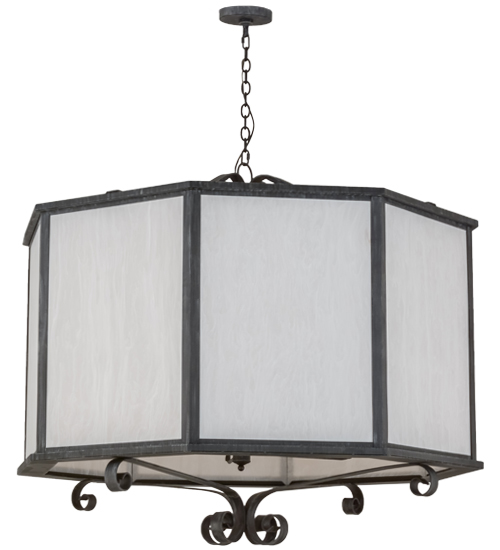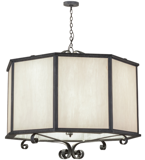 A simple elegance is combined with exquisite detailing and the latest lamping technology. An octagon-shaped ceiling fixture, the Musetta pendant features 8 Fleshtone Idalight panels complemented with a frame, scrolled accents, and hardware in an Antique Iron Gate finish. Beautiful ambient illumination evokes from 8 Customer supplied, 20-watt LED lamps for energy efficiency and long life. The Musetta Pendant is included in our American-made, American-designed, handmade Modern Lighting Collection and manufactured in Yorkville, NY. UL & cUL listed for dry, damp, and wet locations. Featured in the Hilton Garden Inn, Rochester, NY.