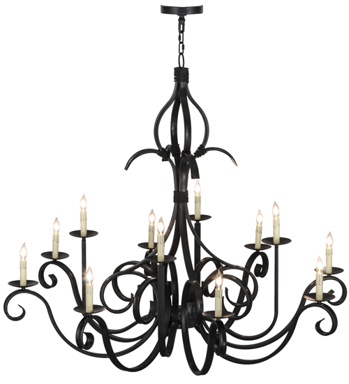 Defining luxurious charm and elegance. Cypress features an elaborate design with Hand-Forged Scrolled arms in stunning Satin Black Wrought Iron. 12 Ivory hand-painted faux candlelights are perched on graceful bobeches. The overall height of this lovely chandelier ranges from 52 to 195 inches as the chain length can be easily adjusted in the field to accommodate your specific lighting application needs. Handcrafted by master artisans in our 180,000 square foot manufacturing facility in Yorkville, New York. Candlelight colors, metal finishes and sizes can be customized to meet your needs. UL and cUL listed for damp and dry locations.