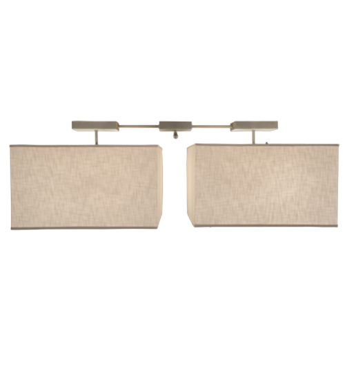 Rendering a clean and stunning architectural look, this streamlined geometric design features two Natural Textrene shades that are complemented with Statuario Idalight bottom diffusers. Ideal for illuminating islands, counters, billiard tables, conference tables, bars and dining tables. Handcrafted by highly skilled artisans in Yorkville, NY, the pendant is available in custom sizes, styles and finishes, as well as dimmable energy efficient lamping options such as LED. This 55-inch long fixture is UL and cUL listed for dry and damp locations.