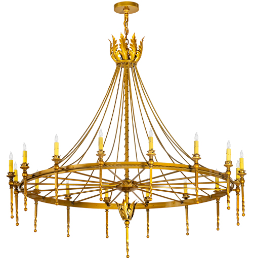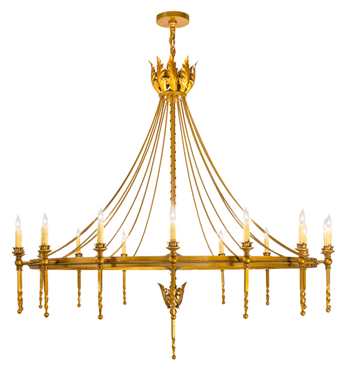 A rich luxurious beauty. Amaury blends classic and timeless styling. This chandelier is the perfect choice for today’s interiors and adds a finishing touch to living areas, entryways, lobbies and other spaces. 16 Ivory faux candlelights are perched on bobeches with stunning ballpoint finials. The hardware is adorned with rope-liked trim and Acanthus leaf accents in a Transparent Gold finish. The overall height ranges from 53.5 to 60 inches as the chain length can be easily adjusted in the field to accommodate your specific lighting application needs. Handmade by highly skilled artisans in our 180,000 square foot manufacturing facility in Yorkville, New York. Custom options available. UL and cUL listed for dry and damp locations.