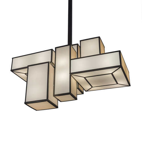 An exceptional fixture for the discriminating eye, this Grand Custom Pendant is a masterpiece that comprises six architecturally styled elements configured in square and rectangular profiles. Two larger horizontal-formed elements are designed with four light sources, while four vertical-shaped profiles are architectural accents that adorn the luminaire. Each component is highlighted with stunning Gold TextraLite and enhanced with Statuario Idalight bottom Diffusers. The fixture is complemented with straight geometric lines featured in a Pewter finish. Place this unique fixture to illuminate bars, islands, and tables in residential, hospitality, and commercial areas from Manhattan, New York, Washington D.C., And Los Angeles, California. The Kiska Oblong Pendant is included in our American-made, American-designed, handcrafted Abstract Lighting Collection and manufactured in Yorkville, New York. UL and cUL listed for dry and damp locations.