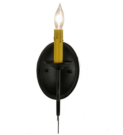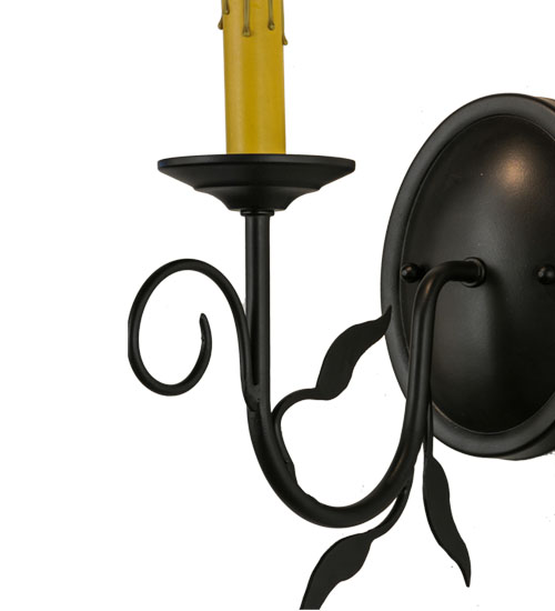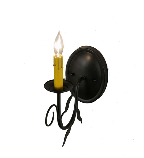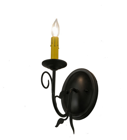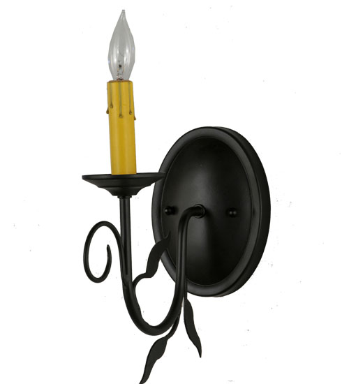 Offering luxurious charm and elegance, Bordeaux features a single light with a Hand-forged Iron arm in a stunning Blackwash finish. The Amber faux candlelights perched on a bobeche embraced by a scrolled arm and round backplate. Custom crafted in the USA, this exquisite sconce is available in custom sizes, styles and colors, as well as dimmable energy efficient lamping options. This 12-inch tall wall fixture is UL and cUL listed for damp and dry locations.