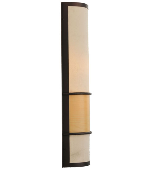 Offering a blend of timeless craftsmanship and classic design. Contempo brings home unsurpassed quality and shapely appeal. The curvaceous shade combines Beige Textrene and a Light Maple Laminate, complemented by a Mahogany Bronze finish. The stunning wall sconce beautifully illuminates dining areas and entryways in fine homes and restaurants. The Contempo Wall Sconce is included in our American-made, American-designed, handcrafted Craftsman Lighting Collection and is manufactured in Yorkville, NY. The wall fixture is UL & cUL listed for dry and damp locations; however, we do not recommend installing it in spaces that experience a large amount of moisture due to the fabric shade.