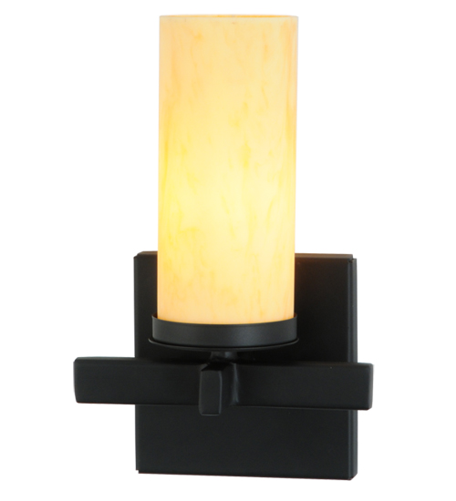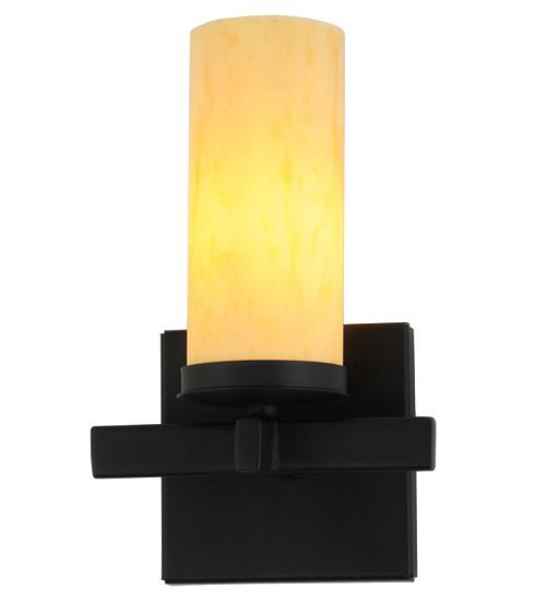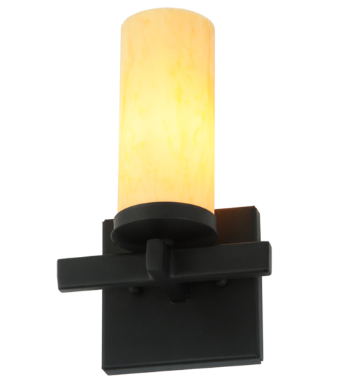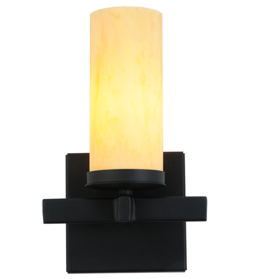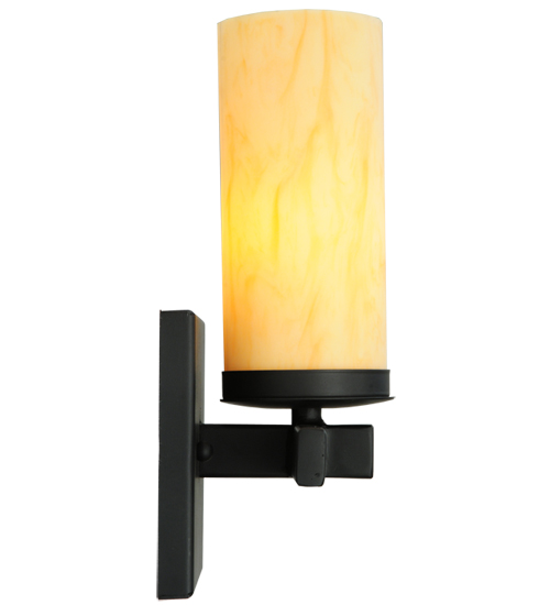 Expert craftsmanship and a distinctive elegance come to light with a handsome wall sconce that entices all to see. A Tawnyrock Idalight Cylinder is embraced by a sturdy frame with hardware featured in a Blackwash finish. Handcrafted by highly skilled artisans in our 180,000 square foot manufacturing facility in Yorkville, New York Custom sizes, styles, colors and dimmable energy efficient lamping options such as LED are available. The wall sconce is UL and cUL listed for damp and dry locations.