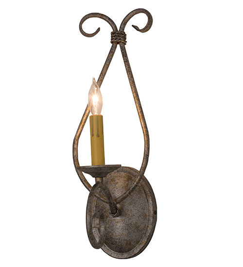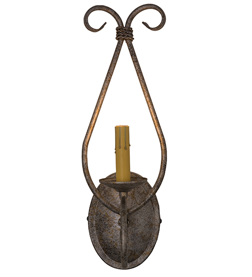 A rich exquisite look is defined by the Olivia Wall Sconce. A graceful, single faux candlelight adorns a bobeche with ornate, scroll-like hardware featured in a stunning Corinth hand-applied finish. This fixture is custom crafted by our artisans in the USA. Custom lighting fixtures are offered with multiple candlelights as well, and in a variety of finishes, styles and energy efficient lamping options.