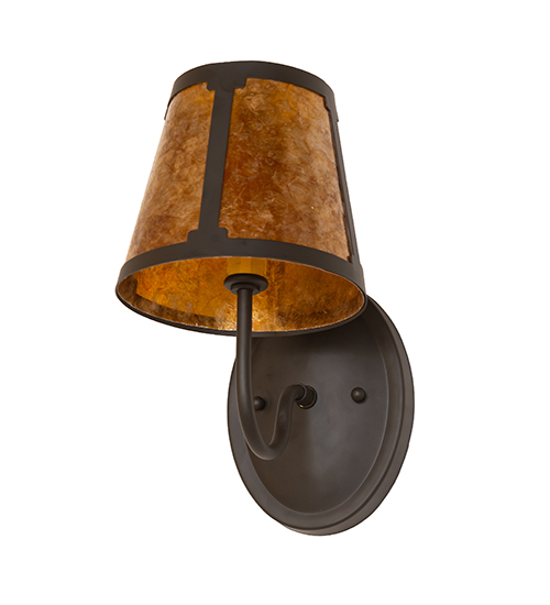 You can elevate your space with this stunning curvaceous wall sconce. Talmont features a sleek Amber Mica shade, which is perched on an Ivory faux candlelight. The minimalist wall fixture is enhanced with a curved arm and a round backplate, both featured in an Oil Rubbed Bronze finish. The mica shade offers a classic, tapered design that renders a handsome look and beautiful ambient illumination. This wall luminaire is ideal for use in hallways, dining areas, and living spaces in residential and hospitality settings. The Talmont Wall Sconce is included in our American-made, American-designed, handcrafted Transitional Lighting Collection and is manufactured in Yorkville, New York. UL and cUL listed for dry and damp locations.