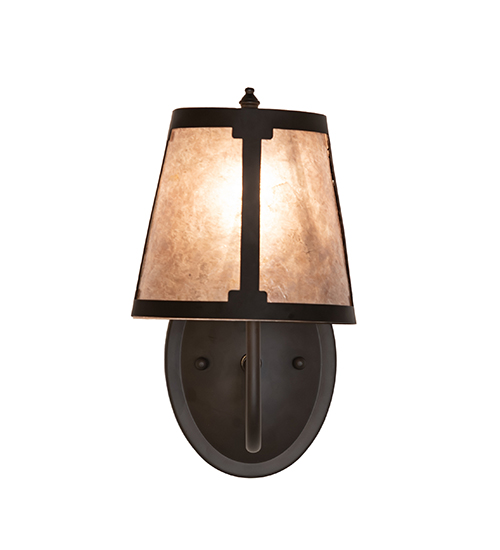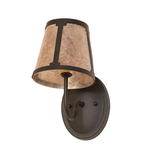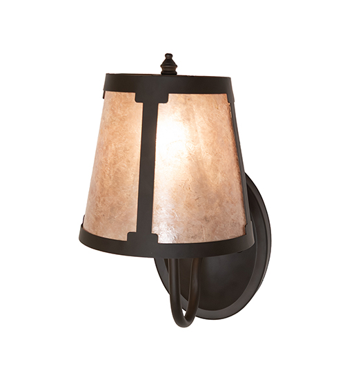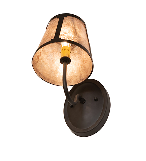 You can elevate your space with this stunning curvaceous wall sconce. Talmont features a sleek Silver Mica shade, which is perched on an Ivory faux candlelight. The wall fixture is enhanced with a curved arm and a round backplate featured in an Oil Rubbed Bronze finish. The mica shade offers a classic, tapered design that renders a handsome look and beautiful ambient illumination. This wall luminaire is ideal for use in hallways, dining areas, and living spaces in residential and hospitality settings. The Talmont Wall Sconce is part of our American-made, American-designed, handcrafted Transitional Lighting Collection, and is manufactured in Yorkville, New York. UL and cUL listed for dry and damp locations.