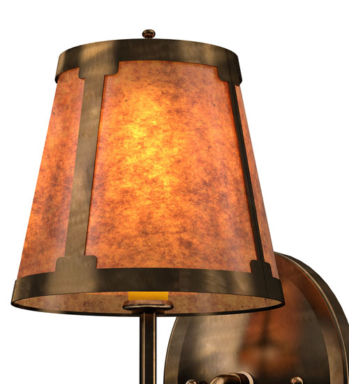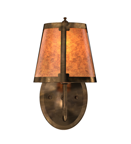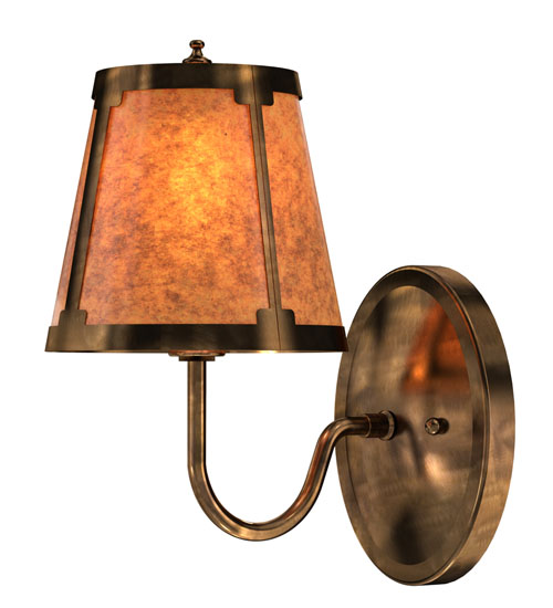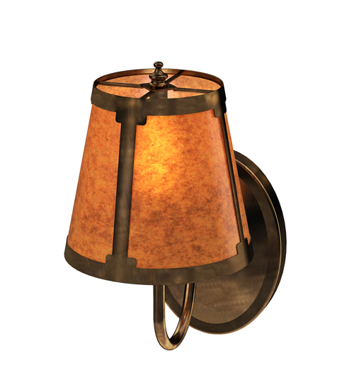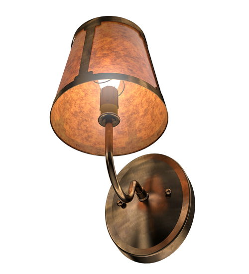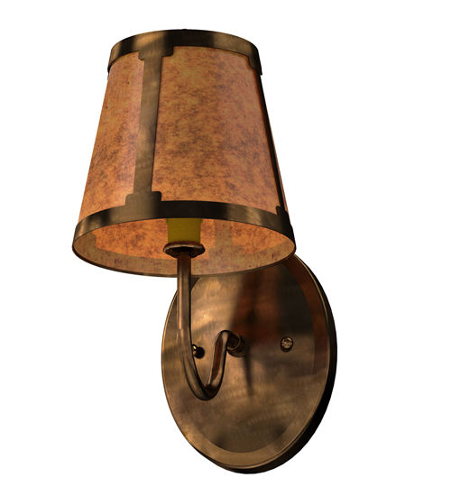 You can elevate your space with this stunning curvaceous wall sconce. Talmont features a sleek Amber Mica shade, which is perched on an Ivory faux candlelight. The wall fixture is enhanced with a curved arm and a round backplate, both of which are finished in Antique Copper. This wall luminaire is ideal for use in hallways, dining areas, and living spaces in residential and hospitality settings. The Talmont Wall Sconce is part of our American-made, American-designed, handcrafted Transitional Lighting Collection, which is manufactured in Yorkville, New York. UL and cUL listed for dry and damp locations.