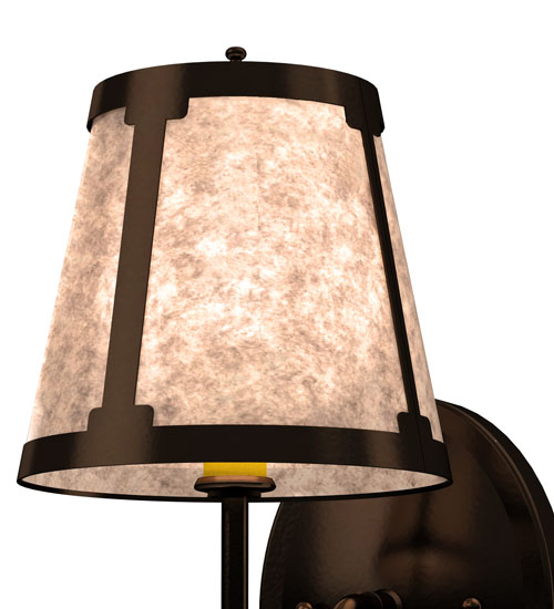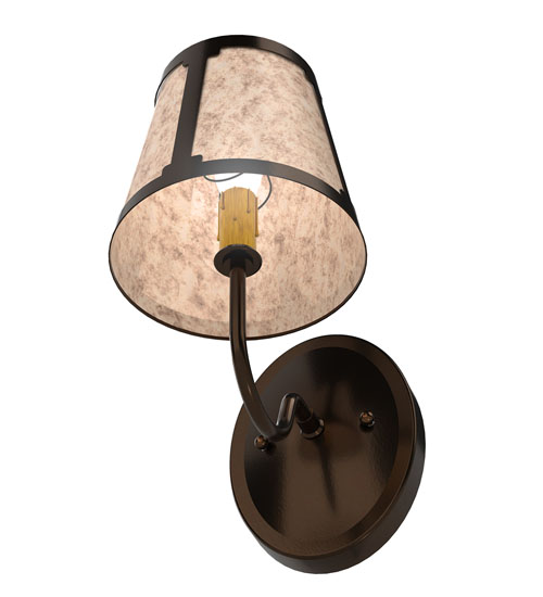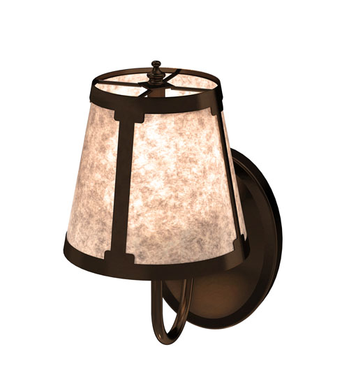 You can elevate your space with this stunning curvaceous wall sconce. Talmont features a sleek Silver Mica shade, which is perched on an Ivory faux candlelight. The wall fixture is enhanced with a curved arm and a round backplate, both of which are finished in Timeless Bronze. This wall luminaire is ideal for use in hallways, dining areas, and living spaces in residential and hospitality settings. The Talmont Wall Sconce is part of our American-made, American-designed, handcrafted Transitional Lighting Collection, which is manufactured in Yorkville, New York. UL and cUL listed for dry and damp locations.