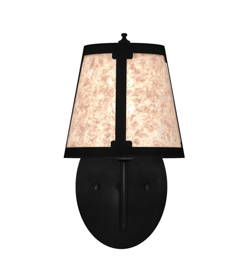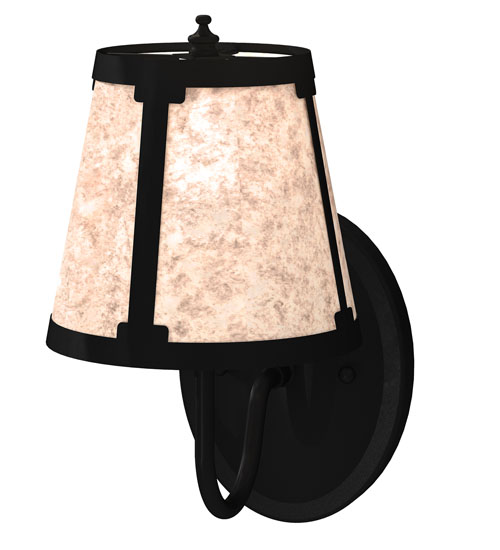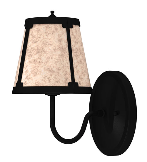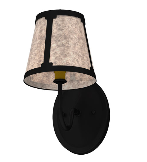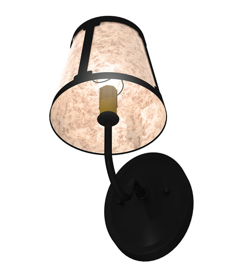 You can elevate your space with this stunning curvaceous wall sconce. Talmont features a sleek Silver Mica shade, which is perched on an Ivory faux candlelight. The wall fixture is enhanced with a curved arm and a round backplate, both of which are finished in Textured Black. This wall luminaire is ideal for use in hallways, dining areas, and living spaces in residential and hospitality settings. The Talmont Wall Sconce is part of our American-made, American-designed, handcrafted Transitional Lighting Collection, which is manufactured in Yorkville, New York. UL and cUL listed for dry and damp locations.