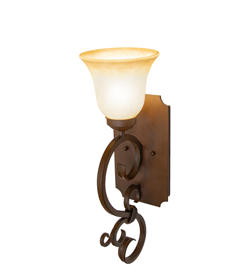 Thierry delivers a graceful elegance resulting in a luxurious design statement. An exquisite Scavo Glass Shade is perched on a bobeche that is paired with Hand-Forged Rustic Iron Scrollwork. The wall fixture is perfect for dining spaces and corridors in fine homes and restaurants. The Thierry Wall Sconce is included in our American-made, American- designed, handcrafted Traditional Lighting Collection. The fixture is UL and cUL listed for dry and damp locations.
